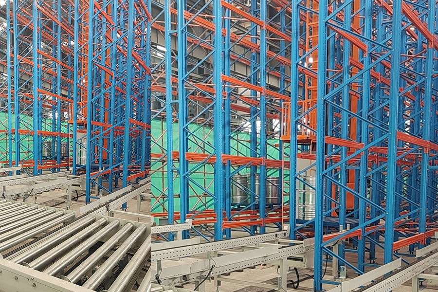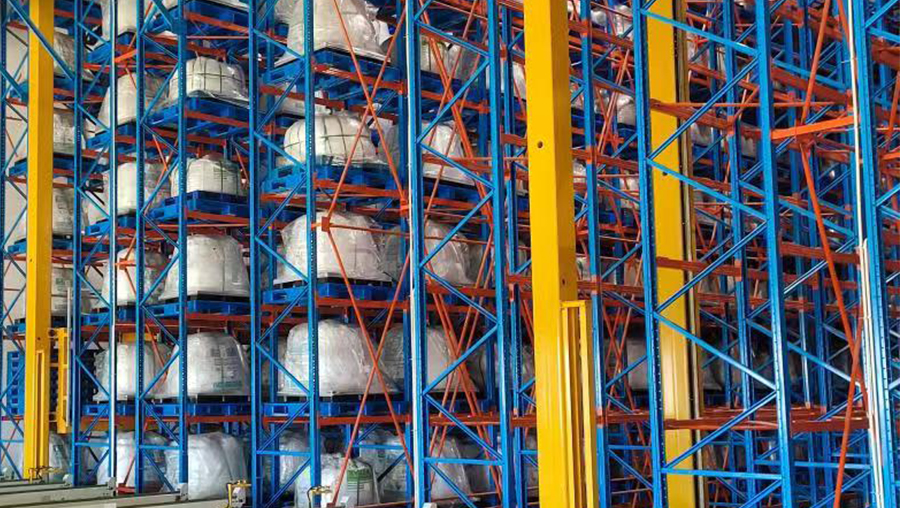 本立體倉庫全套設備由貨架、堆垛機系統、穿梭車、輸送線、計算機調度監控系統和倉庫管理系統等組成。總貨位6544個,鈦白粉庫4320個(13.5排*2貨位*16列*10層),漿包庫2224(24排*12列*8層-10排*8層),鏈條輸送機、漿包整形機、直行穿梭車,WCS/WMS系統各一套。