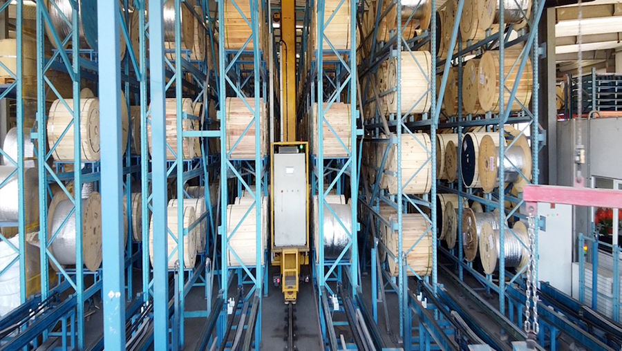 客戶是一家主要從事從事從事銅桿、鋁桿、鋁合金桿生產加工銷售;銅絲、鋁絲、銅鋁合金桿、通信電纜及附件、電力電纜及附件銷售。客戶需求為盤具的儲存,進出庫、生產線對接,解決原來采用盤具導軌庫存放盤具占地面積大的問題等問題。