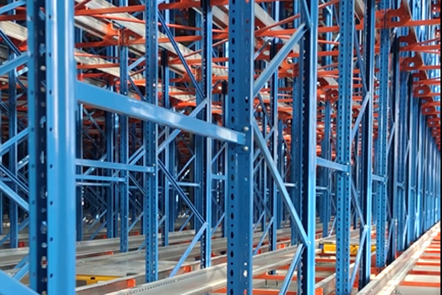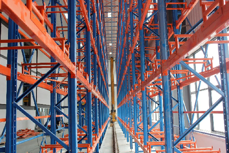 本方案總貨位29008個,長64m,寬11.2m,高14m。由貨架、天地軌、4臺直式巷道堆垛機系統、WMS、WCS系統等組成。貨架采用橫梁組合式,2個巷道8排25×6列24層+8排2列13層,堆垛機采用雙立柱地面支承形式。提高5倍以上倉儲空間面積。