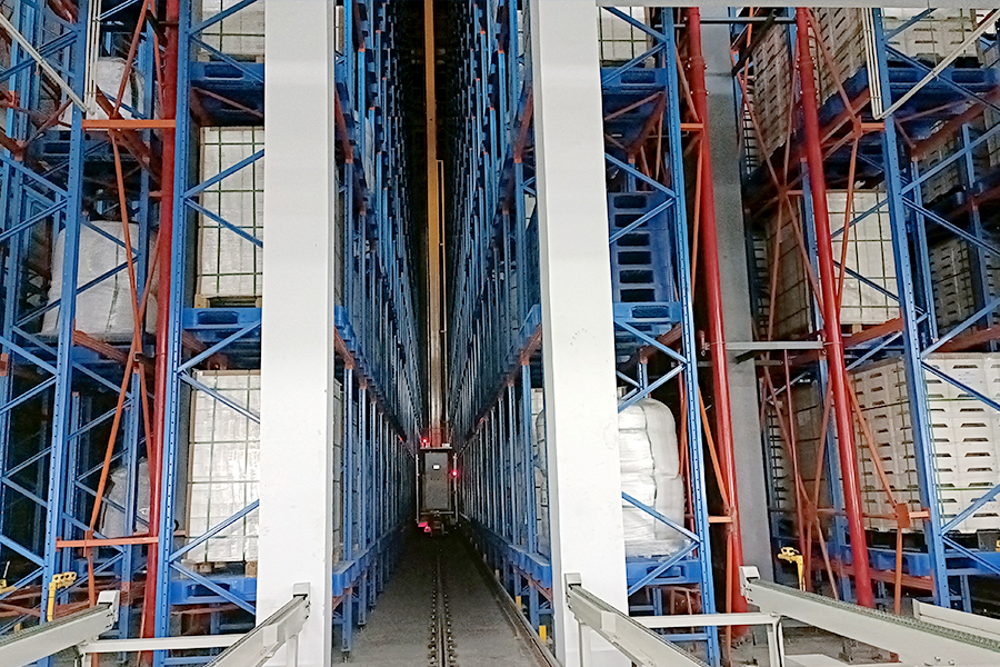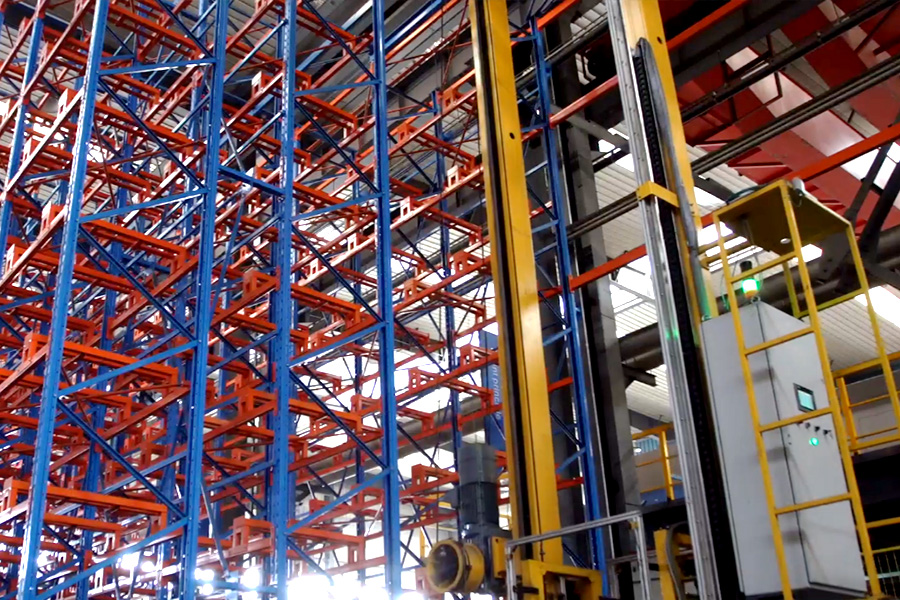 本方案總貨位4352個,高度20m。由6套直式巷道堆垛機系統、立體貨架系統、6套RGV、6套輸送線、6套拆疊盤機、稱重系統、RFID系統、WMS倉庫管理系統和WCS倉儲監控系統等組成。提高3倍以上倉儲空間面積,綜合生產成本降低20%以上。